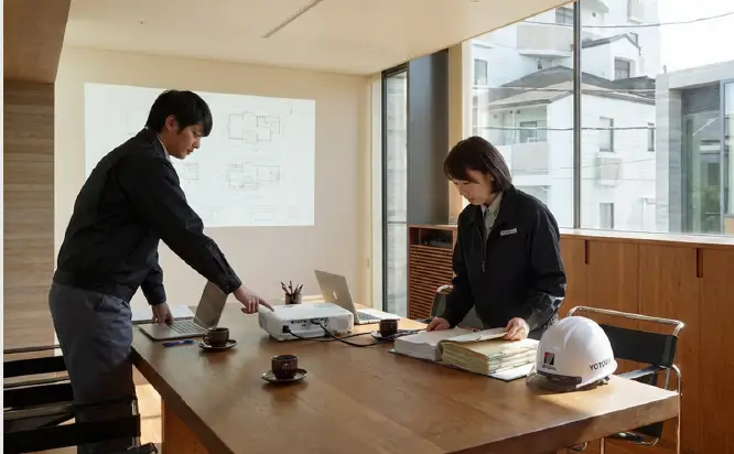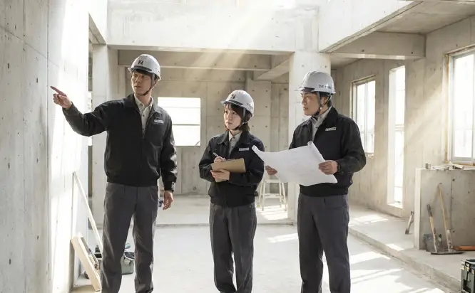 クライアントによる竣工検査に先立ち、独自基準の社内検査によって工事の品質をチェックします。そこで出た「より良くする」ための気づきや指摘は直ちに反映。目に見えない“当たり前の快適・安心”の追求は、引き渡しのその時まで続きます。