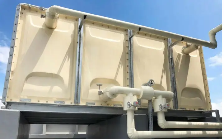 建物に供給される水をいったん貯めて安定供給するための受水槽。